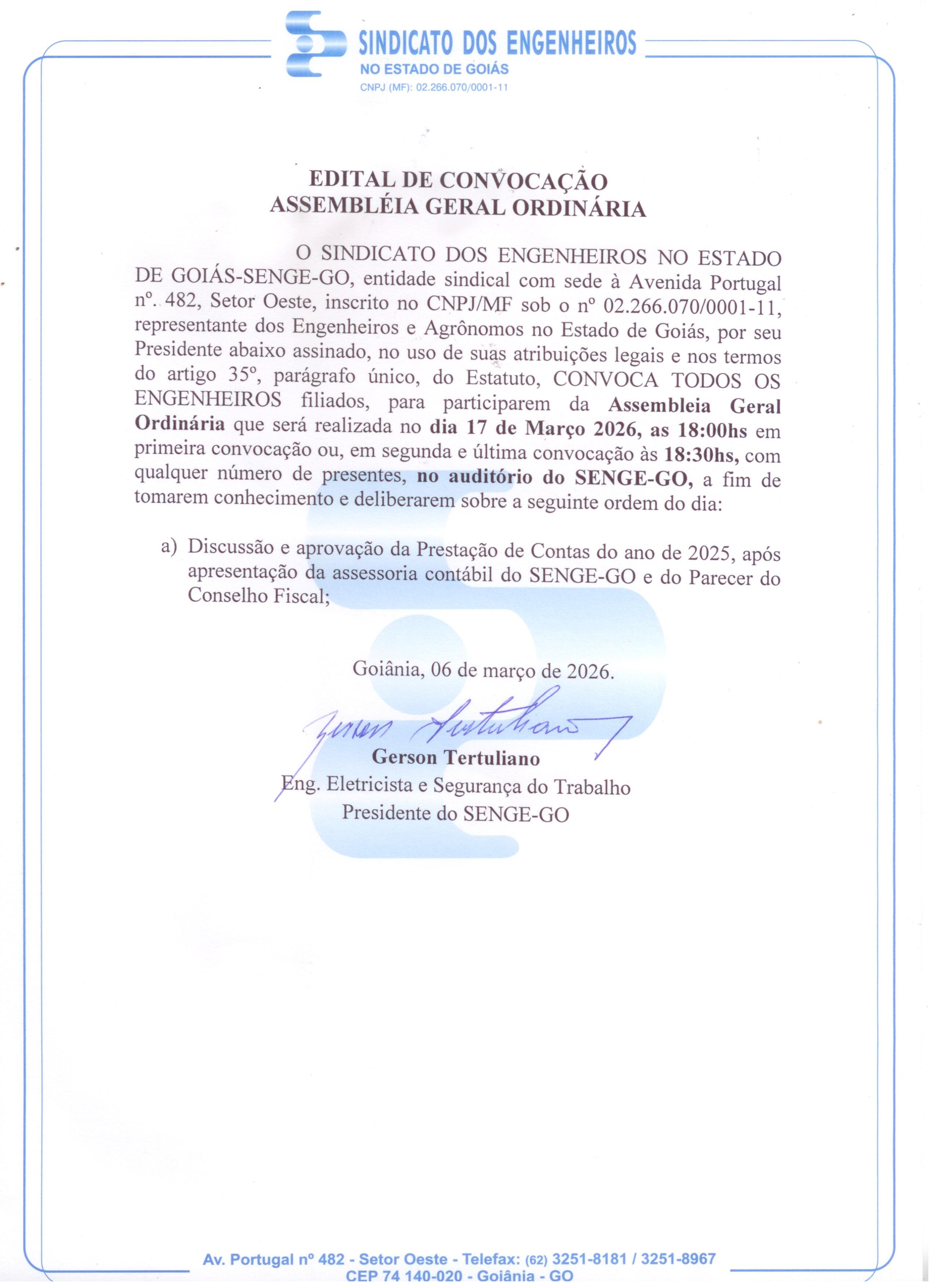 AGO Prestação de conta do SENGE-GO 2025